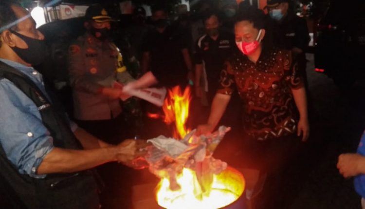 Didampingi Kapolres Cilegon, Dandim 0623 Cilegon dan Bawaslu Kota Cilegon, KPU musnahkan 1.561 surat suara dengan cara dibakar.