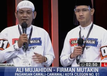 Cilegon, CNO - Penampilan paslon nomor urut 1, Ali Mujahidin dan Firman Mutakin (Mulia) dalam debat terbuka Pilkada Kota Cilegon ...