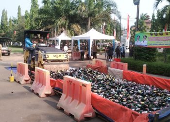 Cilegon, CNO - Ribuan botol berisi minuman keras dari beragam merk dan jenis diamankan petugas kepolisian dari Polres Cilegon, Kamis ...