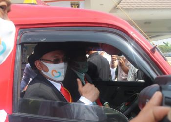 Cilegon, CNO - Helldy Agustian, bakal calon Wali Kota Cilegon jadi sopir angkutan kota (angkot) saat menuju kantor KPU Kota ...