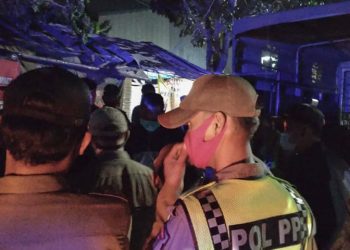 Serang, CNO - Dua orang berpakaian serba hitam bertuliskan BPPKB, terlihat menghalangi petugas saat akan menutup warung remang-remang (warem) di ...